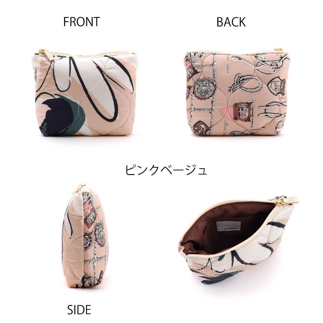 デッドストックのスカーフを中綿を入れてキルティングに仕立てたポーチ。