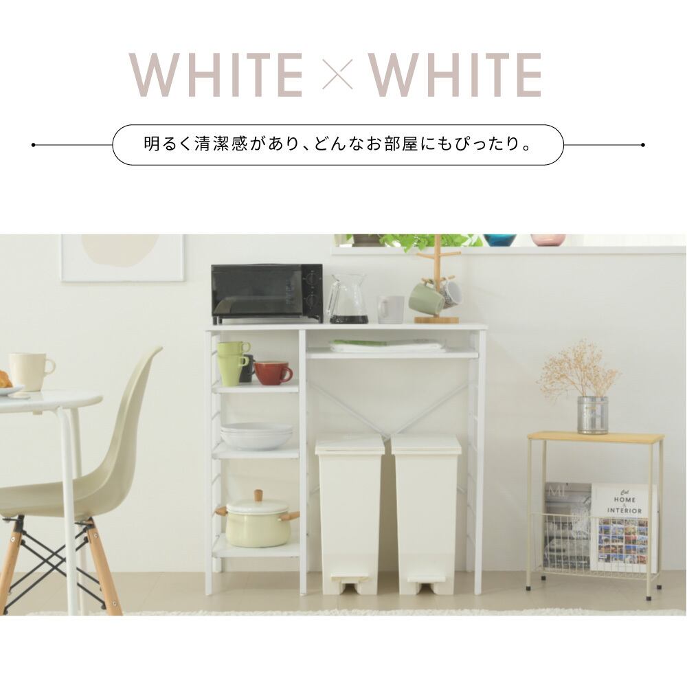 ゴミ箱上 収納 ラック 幅90 スリム キッチンカウンター キッチンラック 食器棚 レンジ台 収納棚 作業台 奥行40 ホワイト 間仕切り ゴミ箱スペース 高さ85 食器 家電 天板 メラミン 木製 | MARUNOKI -生活雑貨のアイデア屋-