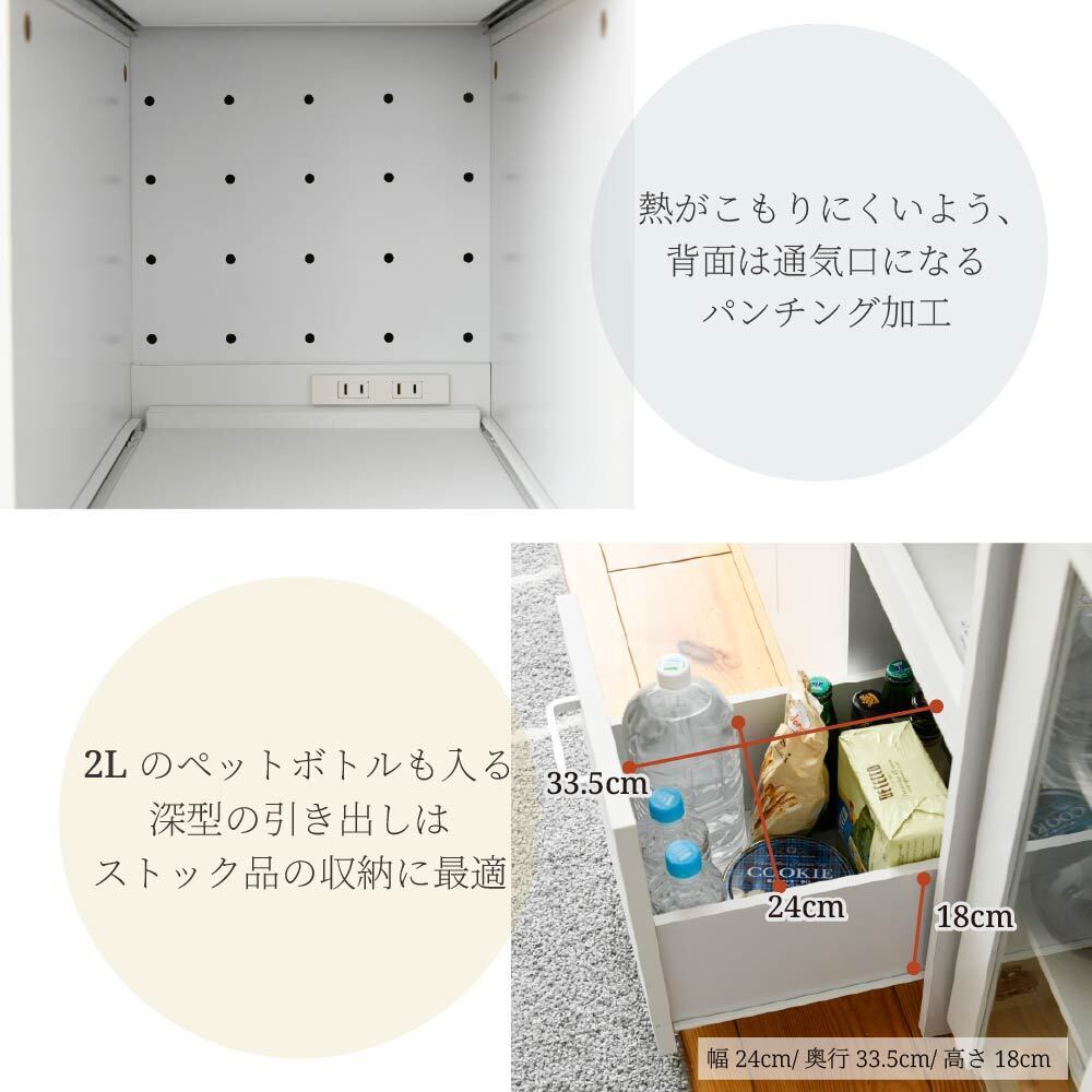 炊飯器とポットなど家電を2台置けるスライド棚を2段装備。