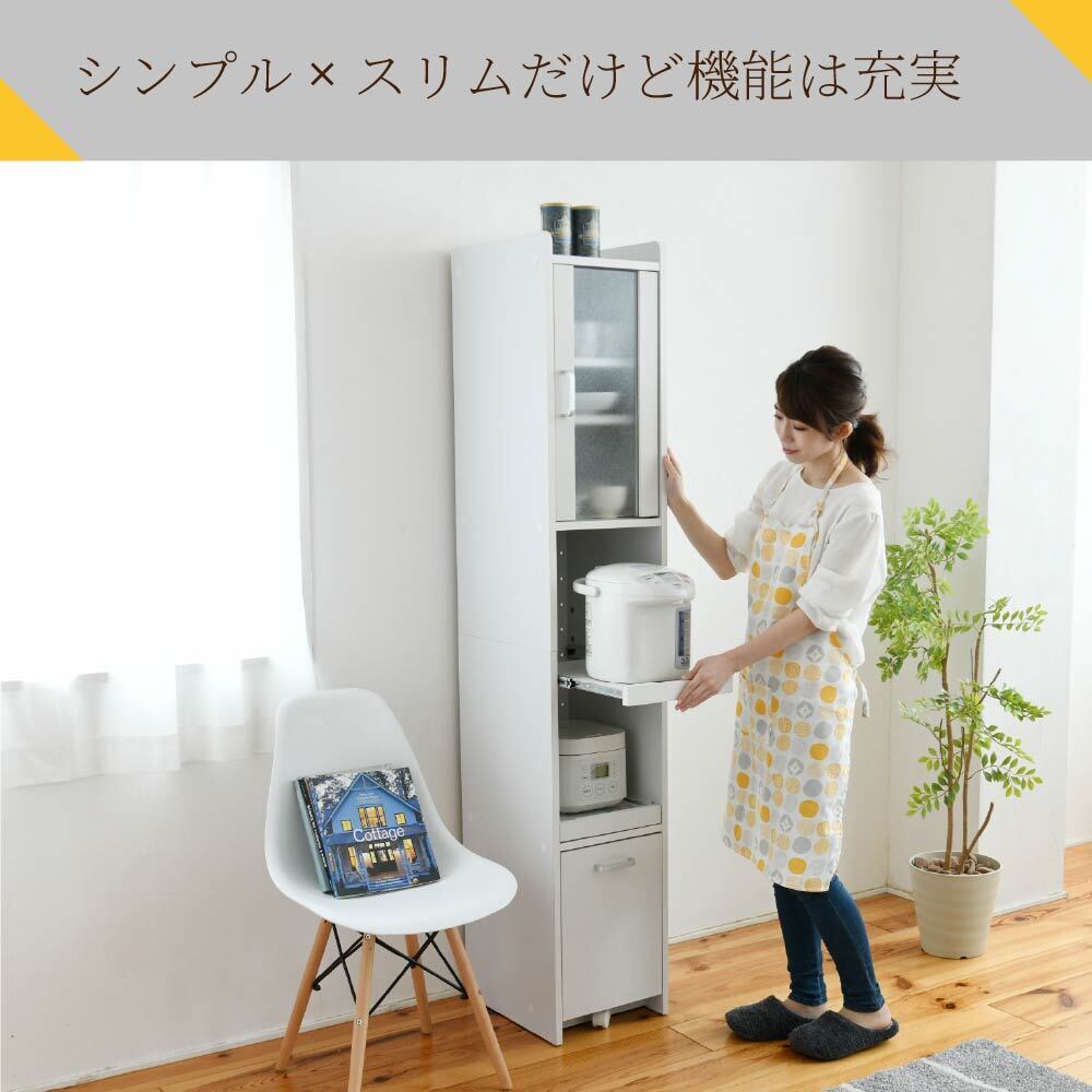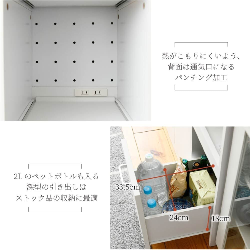 中段には炊飯器とポットなど家電を2台置けるスライド棚を2段装備。