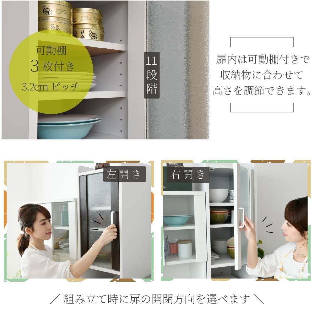 扉は組立時に左右開きが選べ、可動棚3枚で効率的に収納できます。