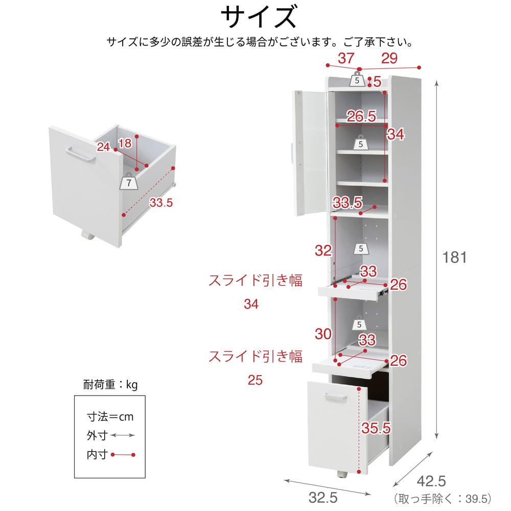 幅32.5cmの隙間を、床から天井まで活用する高さ181cmのハイタイプ。